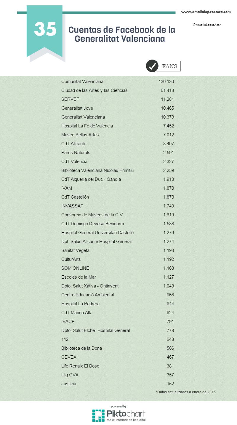 Aquí os dejo esta infografía con la información actualizada de las cuentas de Facebook de la Generalitat Valenciana.