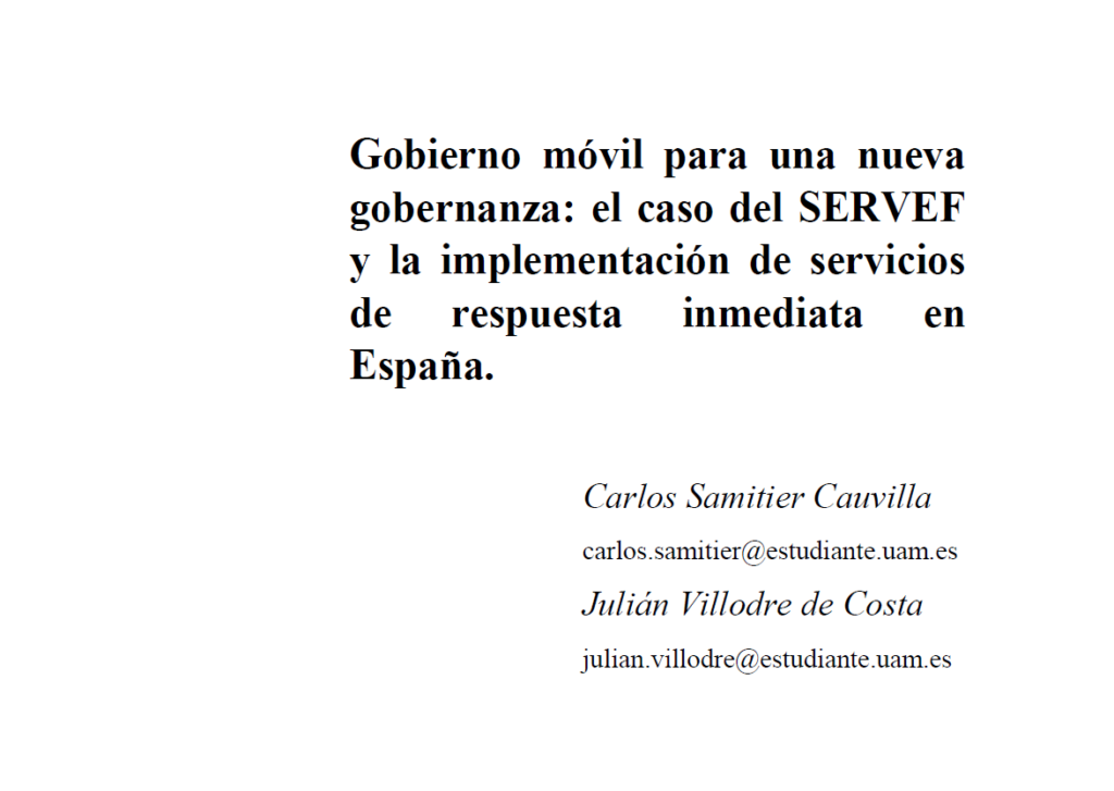 En ese mismo Congreso pude también «desvirtualizar» a Julián Villodre, estudiante de Ciencia Política y Administración Pública en la Universidad Autónoma de Madrid y que desde el primer momento se interesó por esta iniciativa y motivo por el cual ha realizado junto a su compañero, Carlos Samitier, un estudio sobre la implementación de este servicio.