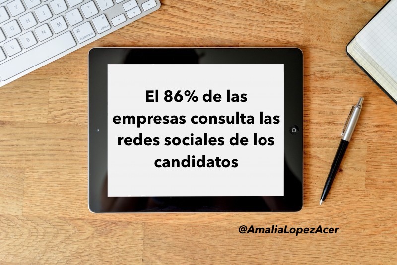 - El 86% de las empresas consulta las redes sociales de los candidatos. Si teníamos alguna duda de que no lo hacían ya está solventada. Y no sólo eso, el 55% ha reconsiderado la decisión de contratar a un candidato después de consultar los perfiles de redes sociales. [ctt template=»11″ link=»dsPaf» via=»no» nofollow=»yes»]»El 86% de las empresas consulta las redes sociales de los candidatos»[/ctt]