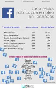 Hace unas semanas elaboré una infografía sobre la presencia que tenían los servicios públicos de empleo en Twitter con el objetivo de conocer qué comunidades autónomas tenían perfil en dicha red social así como analizar cuál era su situación en la misma. Ahora le ha tocado el turno a otra de las redes sociales más utilizadas, Facebook.